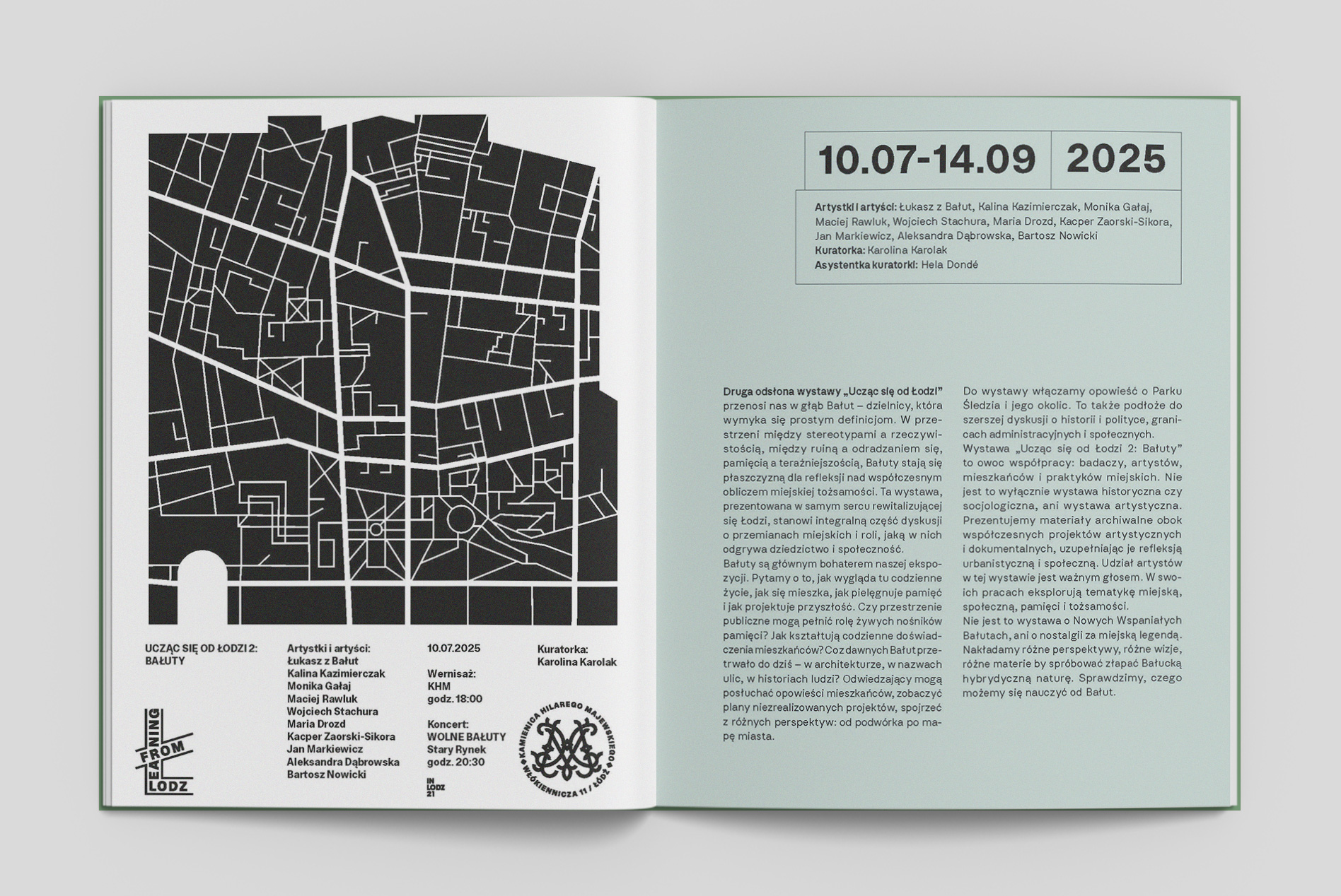 Zbiór wybranych tekstów stanowi kontynuację eksploracji tożsamości miasta i wspierania procesów rewitalizacyjnych, które w poprzednim tomie analizowaliśmy w kontekście bezpośredniego sąsiedztwa przy ulicy Kamiennej/Włókienniczej, a jednocześnie rozwija wątki obecne w tegorocznej wystawie. Poszczególne eseje podejmują temat Bałut z różnych, uzupełniających się perspektyw: Aleksandra Sumorok analizuje historyczne warstwy i przekształcenia łódzkiego Starego Miasta, ukazując jego unikalny, hybrydowy charakter, ukształtowany przez rozwój i powojenną przebudowę socrealistyczną. Bogdan Jankowski w swoim eseju analizuje przemiany Bałut z perspektywy doświadczania miejsca i przestrzeni, odwołując się do koncepcji Yi-Fu Tuana. Adrian Zieleniewicz przedstawia powojenną przebudowę Bałut i Starego Miasta jako urbanistyczny megaprojekt, analizując jego założenia, wyzwania i niezrealizowane wizje. Natomiast Bartosz Nowicki dokonuje akustycznej eksploracji Bałut, próbując uchwycić i zinterpretować dźwiękowe ślady trudnej historii Litzmannstadt Getto w kontekście współczesnego krajobrazu dźwiękowego dzielnicy.