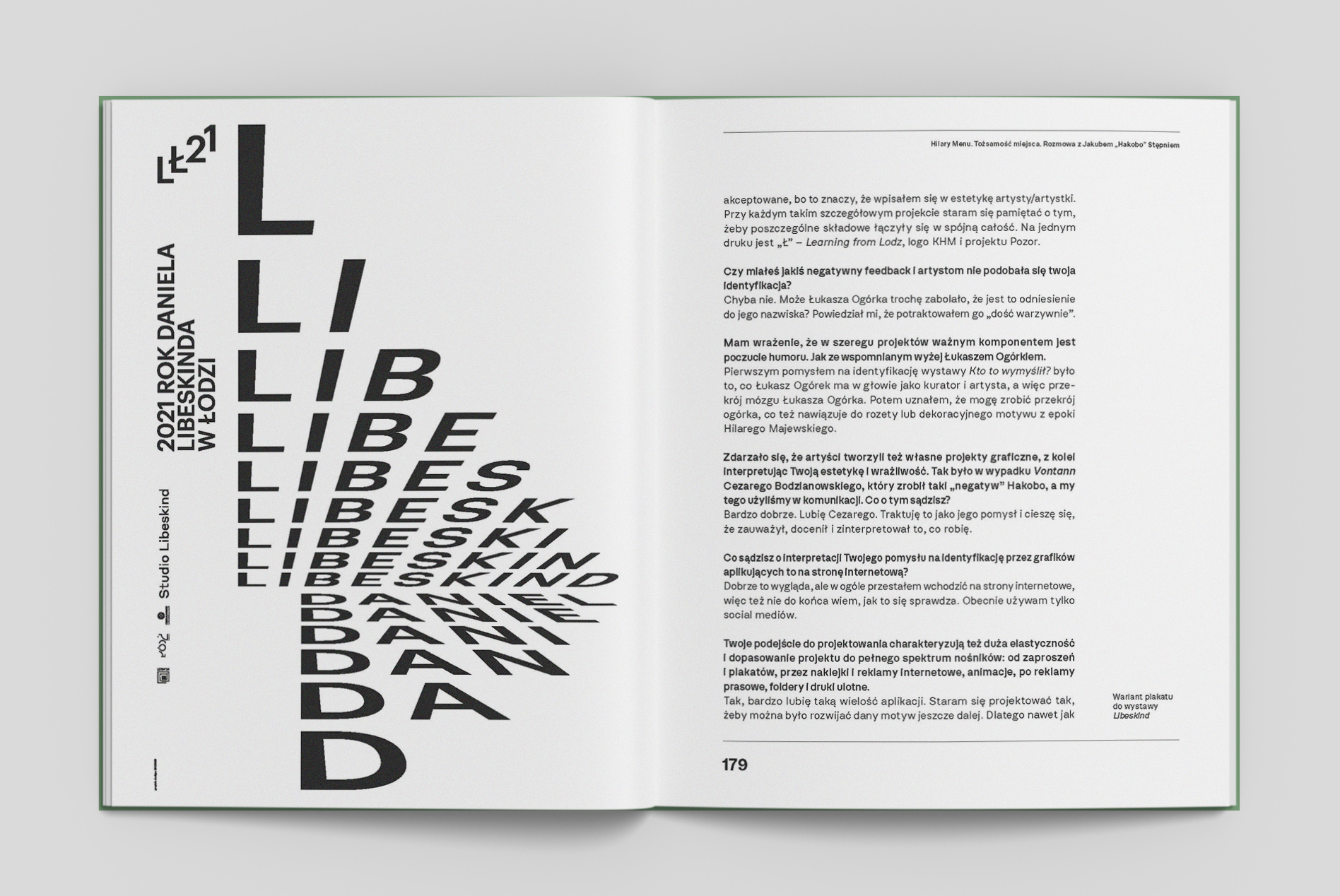 Druga część to zapis naszych działań od kuchni – instytucjonalny portret w ruchu. Opisujemy praktyki testowane w ramach inLodz21 i Kamienicy Hilarego Majewskiego – od edukacji, przez projektowanie graficzne, po działania uliczne. W tym dynamicznym okresie jako organizacja współpracowaliśmy z praktykantkami i wolontariuszami, eksperymentowaliśmy z programowaniem oraz adaptowaliśmy się do historycznej kamienicy, jednocześnie coraz częściej wychodząc ze swoimi działaniami na zewnątrz – na Włókienniczą, w przestrzeń Łodzi i w świat. W tej sekcji przedstawiamy notatki edukacyjne sporządzone przez zespół edukacji, pozwalające zagłębić się w koncepcje i edukacyjne inspiracje rozwijane pod hasłem Hilarium czy Gabinetu Hilarego Majewskiego. Adam Mazur w rozmowie z Jakubem Stępniem Hakobo omawia proces kształtowania wizerunku i budowania rozpoznawalności instytucji za pomocą narzędzi graficznych. O współpracy z instytucją opowiada w swoim tekście Paulina Frankiewicz, która współtworzy program spotkań z humanistyki architektonicznej oraz prowadzi w KHM Dzielny Klub Książki. Ada Słowikowska prezentuje natomiast efekt działania performatywnego, włączającego ulicę w obszar akcji Witrynki-Walentynki, gdzie zaprosiła do współudziału lokalnych artystów.