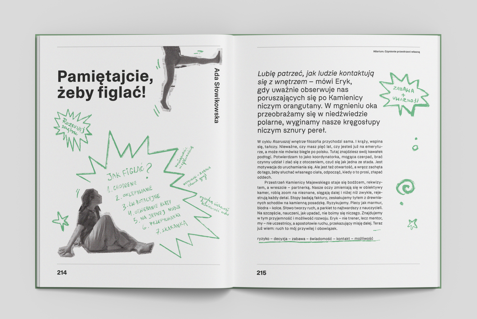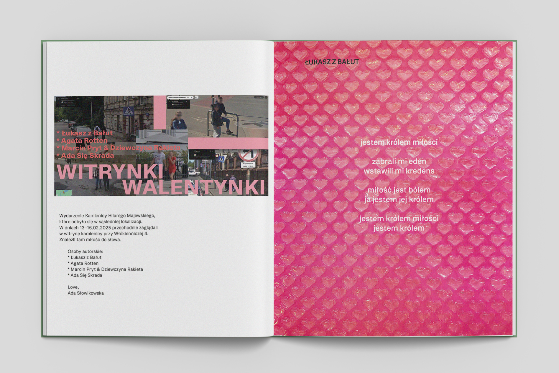 Książka ma także część katalogową gdzie zobaczycie prace i działania artystek i artystów, z którymi współpracowaliśmy w tym roku. Całość pod redakcją Karolina Karolak i Adama Mazura, zaprojektowana przez Adama Sikorskiego i Beatę Grabską, wyprodukowana przez Maję Wójcik.